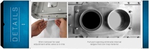 Drücken bis zu 15 psig (1 barg), je nach Schiebergrösse, entwickelt. Eine Vollöffnung sorgt für ungehinderten Materialfluss und ein Metalleinsatzschützt die vorgespannten Dichtungen vor Abrieb.