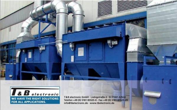 Arbeitsplätze, an denen Staub- oder Schadstoffemissionen entstehen, sind in der Regel mit einer Absauganlage und einem Filter ausgestattet. Das Eindringen von glühenden Partikeln kann in diesem Filter zu einem Brand der Filterelemente führen. Zum Schutz dieser Filter kommen T&B-Objektschutzlöschanlagen zum Einsatz. Wichtigste Voraussetzung für einen wirksamen Brandschutz ist ein ganzheitliches Schutzkonzept, dass individuell auf den jeweiligen Anwendungsfall abgestimmt wird. Die Erkennung eines Brandes erfolgt im Roh- und Reingasbereich des Filters über hochsensible Infrarot- und Thermodetektoren. Diese Kombination stellt eine größtmögliche Zuverlässigkeit und Täuschungssicherheit dar.
