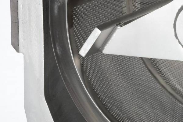Mit der optionalen Mahlspaltverstellung kann zusätzlich Einfluss auf das Mahlergebnis genommen werden. Ebenso gibt es verschiedene Arten von Siebeinsätzen: Es gibt gelochte Siebe und Reibsiebe. Letztere besitzen, genau wie eine Reibe im Haushalt, eine schneidende Wirkung.