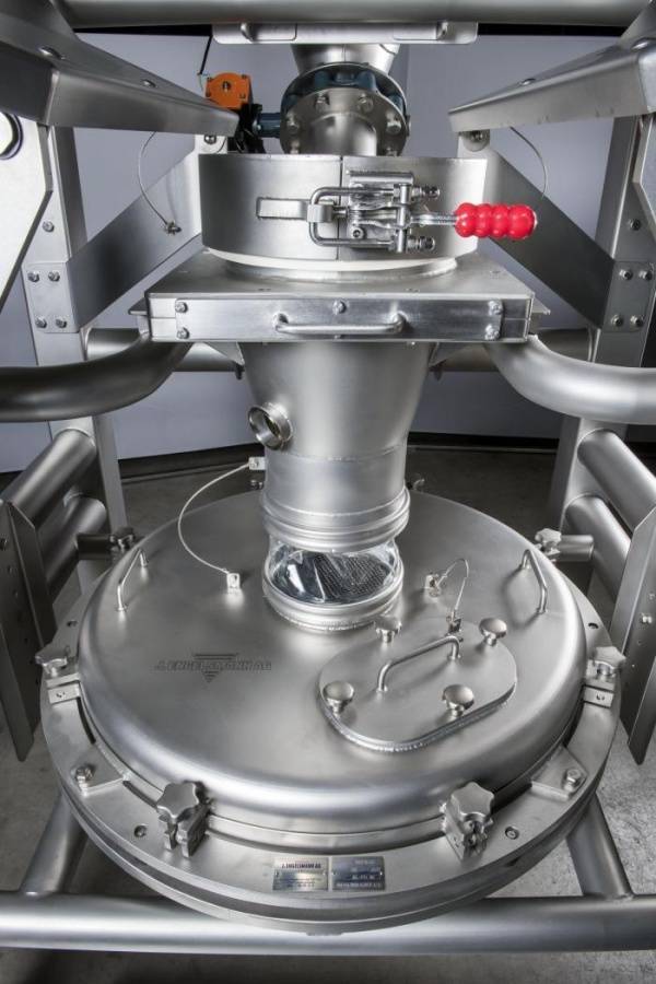 Hygienische Big Bag Entleerung mit integriertem Schutzsieb