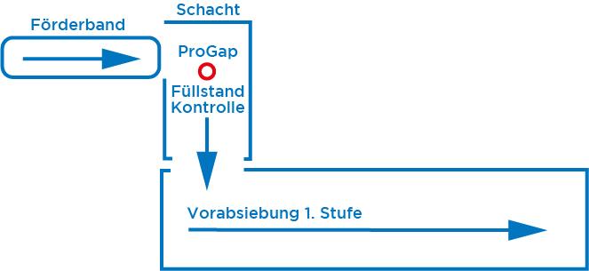 Ein Hersteller von Baustoffen produziert Gipskartonplatten. Im Rahmen des Produktionsprozesses wird Ton verwendet. Dieser wird aus einem Silo kommend über eine Förderschnecke transportiert. Nach der Mengenmessung, die bisher über ein Prallplattensystem getätigt wurde, wird das Material über ein Förderband zur Produktionsstätte weitertransportiert.