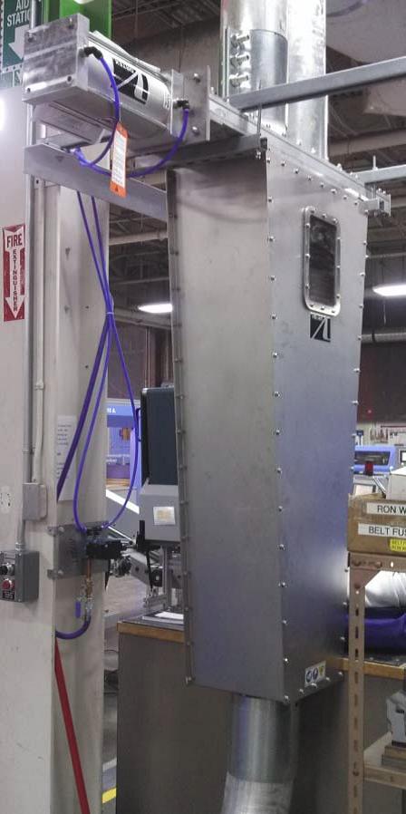 Vortex stellt der Druckerei die flexible Schlauchweiche vor, um zum einen die Papierschnipsel in den Auffangbehälter weiter weg und die Buchrückenstücke in einen Behälter neben der Schneidemaschine umzulenken.