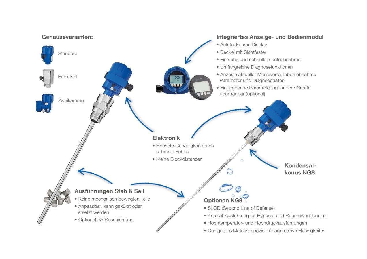 Die intelligente Software der geführten Radarsensorik ermöglicht eine hohe Anlagenverfügbarkeit. Echokurven werden aufgezeichnet und gespeichert und im Laufe der Zeit lernt der Sensor sozusagen dazu und weiß zu unterscheiden welche Signale sich verändern und welche sich konstant an einer Stelle befinden. Störende Einbauten können so identifiziert werden und Einsätze von Servicetechnikern aufgrund fehlerhafter Füllstandsignale werden vermieden. Das Programmierelement mit einem aufsteckbaren Anzeige- und Bedienmodul sowie einem Deckel mit Sichtfester ermöglicht ein sehr nutzerfreundliches Bedienen des TDR NivoGuide®. Umfangreiche Diagnosefunktionen sorgen für ein rasches und sicheres Handling. Es werden beispielsweise aktuelle Messwerte sowie Inbetriebnahme Parameter angezeigt. Die parametrierten Daten können gespeichert und auf andere geführte Radargeräte übertragen werden, was eine erhebliche Zeitersparnis des Installationsvorgans zur Folge hatte. Die geführte Schnellinbetriebnahme in 5 einfachen Schritten erfolgt intuitiv auf die Anwendung mit optimaler Anpassung des Sensors. Für den Anlagenbetreiber war es somit ein Leichtes die NivoGuide® Sensoren rasch in Betrieb zu nehmen.