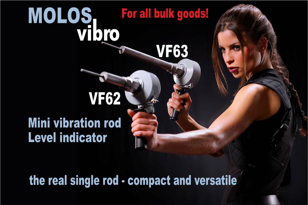 Der MOLOSvibro-Füllstandanzeiger VF6. eignet sich auch bei extremen Prozessbedingungen als Voll-, Leer- oder Bedarfsmelder in Behältern und Containern für staub- und pulverförmige, granulierte sowie körnige Schüttgüter ab einem Schüttgewicht von 0,02 t/m³. Der kompakte Geräteaufbau ermöglicht eine zuverlässige Füllstandanzeige auch bei sehr begrenztem Einbauraum. Dieses Messgerät zur Grenzstandmessung ist als Kompaktsensor, Auslegersensor und Tragkabelsensor verfügbar.