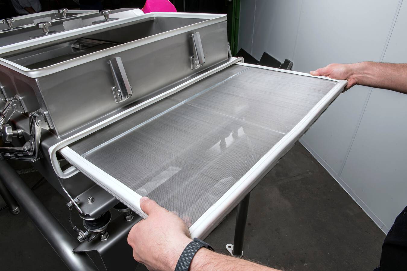 Genauso wichtig wie flexible Anpassungsmöglichkeiten und ein einfaches Handling, ist die gründliche Reinigbarkeit des Equipments – denn gerade bei häufig anfallenden Produktwechseln sollte sichergestellt sein, dass sich die verschiedenen Schüttgüter nicht miteinander vermischen. Auch hier bietet die JEL Konti Vorteile: Der rechteckige Siebtrog ist mit vergrößerten Radien ausgeführt. Dadurch ist der Innentrog frei von Ecken und Kanten, in denen sich Produktreste festsetzen könnten. Innenliegende Dichtungen sind bequem erreichbar und können schnell und ohne den Einsatz von Werkzeugen entfernt, gereinigt und anschließend wieder aufgesteckt werden. So wird der Reinigungsaufwand auf ein Minimum reduziert.