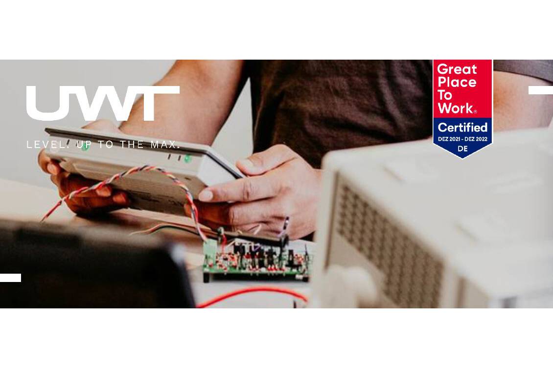3 auf einen Streich ”Deutschlands Beste Arbeitgeber 2022” - ”Bayerns Beste Arbeitgeber 2022” - ”Beste Arbeitgeber im Allgäu 2022” Das internationale Forschungs- und Beratungsinstitut Great Place to Work® unterstützt in rund 60 Ländern Firmen dabei, ihre Unternehmens- und Arbeitsplatzkultur zu analysieren, weiterzuentwickeln und sichtbar zu machen. Zertifiziert wird diese auf Grundlage anonymer Mitarbeiterbefragungen und der Analyse der Personalmaßnahmen. Weltweit sind es jährlich ca. 10 Millionen Befragungsteilnehmer in mehr als 10.000 Unternehmen. Jedes Jahr werden dabei besonders exzellente Arbeitgeber, für ihre Leistung international, national, regional und branchenspezifisch ausgezeichnet. Im deutschland- und bayernweiten Ranking gelangt UWT je unter die TOP 25 der besten Arbeitgeber in der Kategorie der Unternehmen mit 50 - 200 Beschäftigten. Im allgäuweiten Regionalwettbewerb erreichen wir sogar Platz 2. Damit ist es offiziell: UWT ist ein „Great Place to Work“ - und das lt. der ehrlichsten Jury der Welt: unseren Mitarbeiterinnen und Mitarbeitern. Denn diese liegen