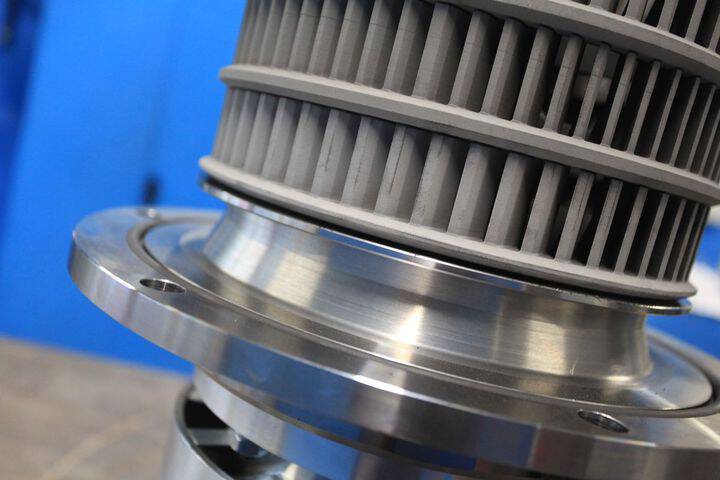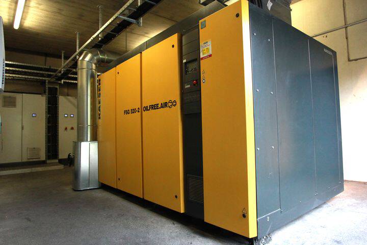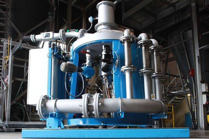 Dafür wurde in Zusammenarbeit mit einem renommierten Kompressorenhersteller ein Kompressor (Abb. 4) entwickelt, der durch verminderte Zwischenkühlung eine deutlich höhere Austrittstemperatur der Druckluft von bis zu 240 °C bei gleichbleibendem Energieeintrag bereitstellt. Allein dieser Schritt führt bereits je nach Mahlgut zu einer Reduktion des spezifischen Energiebedarfes je Tonne Fertigprodukt von mehr als 15 % verglichen mit Standardkompressoren bzw. Standardstrahlmühlen.