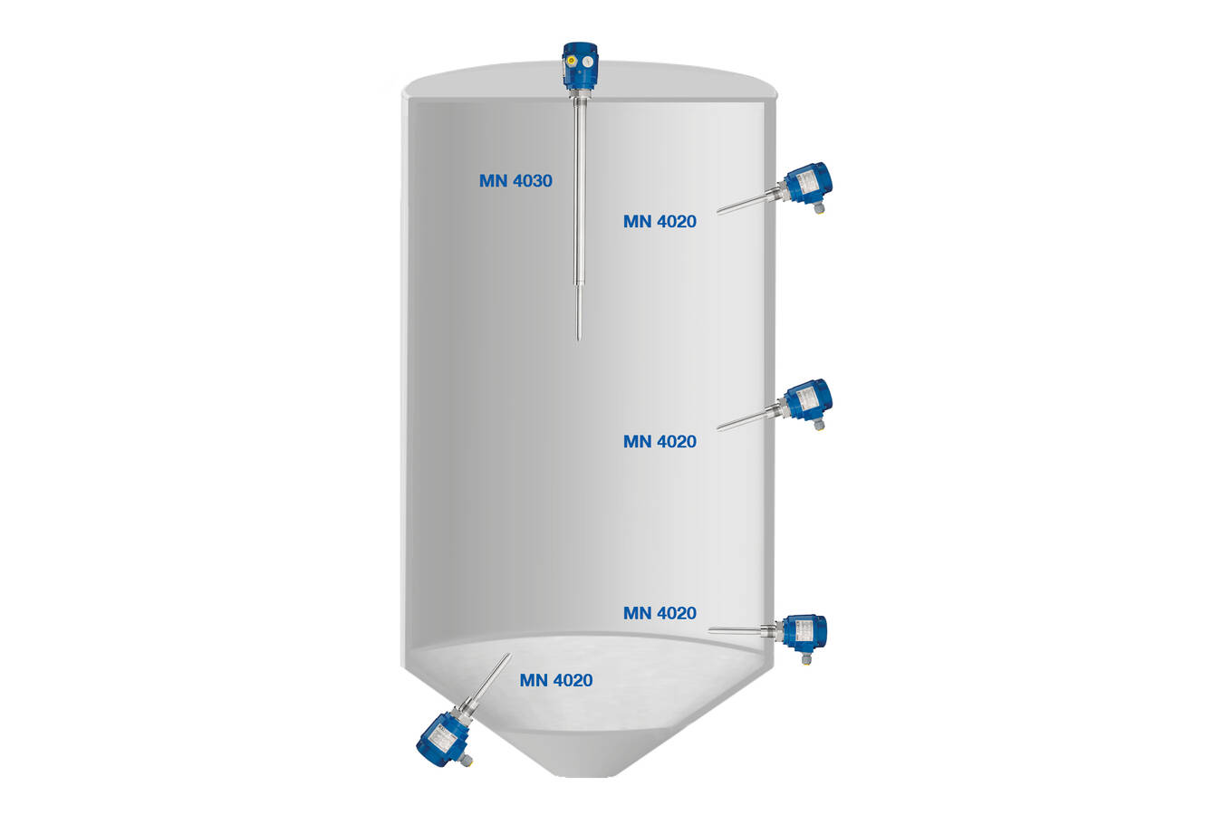 Aufgrund der 4-stufig einstellbaren Sensibilität werden sehr leichte, pulvrige Schüttgüter ab 20g/l zuverlässig erfasst, auch bei solchen mit Neigung zu Brückenbildung. Gleichzeitig ermöglicht die robuste Verbauung die Messung in grobkörnigen Granulaten. Branchenunabhängig kann das Gerät zur Detektion sowohl von Kunststoffen, Nahrungsmitteln sowie Baustoffen, chemischen Materialien usw. für Prozesstemperaturen bis zu 150°C eingesetzt werden. Daneben stellen MN 4000 Modelle außerdem sehr wirtschaftlich umsetzbare Lösungen dar.