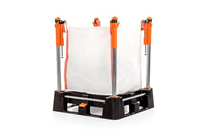 - Lagereffizienz: Octabins lassen sich nicht sicher stapeln und blockieren wertvolle Lagerfläche. Big Bags hatten traditionell die gleiche Einschränkung – bis der Indus Neva Big-Bag-Träger das Stapeln möglich machte. Viele Kunststoffverarbeiter nutzen diese Lösung, um große Volumina sicher und platzsparend zu lagern und zu bewegen.
